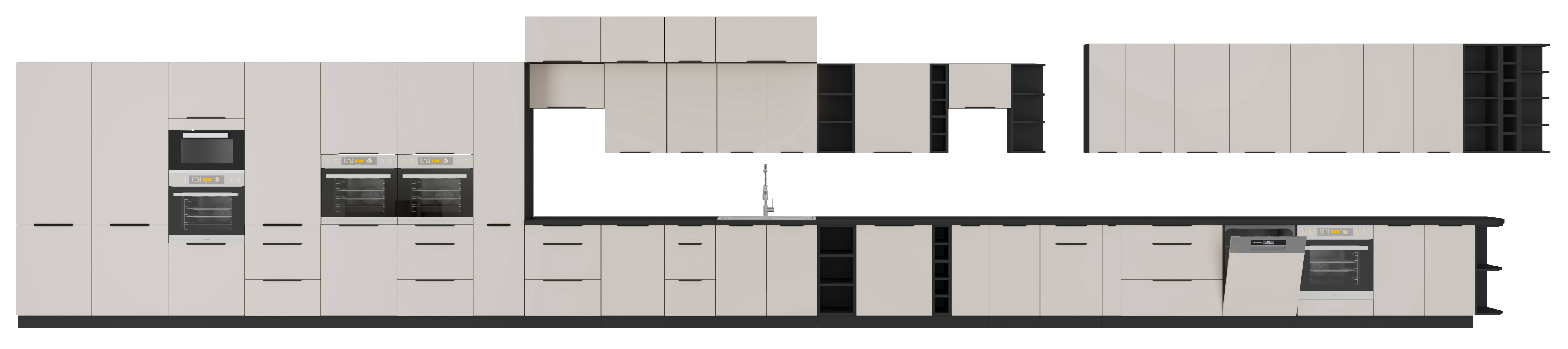 Kolekcja mebli kuchennych ARA charakteryzuje się modną kolorystyką, matowym wykończeniem elementów oraz czarnymi metalowymi uchwytami. Połączenie kaszmirowego koloru frontów z czarnym korpusem zadowoli nawet najbardziej wymagające gusta i upiększy wnętrze twojej kuchni. Natomiast modułowa budowa i duży wybór szafek, sprawi, że bez problemu dopasujesz zestaw do wymiarów swojej kuchni.