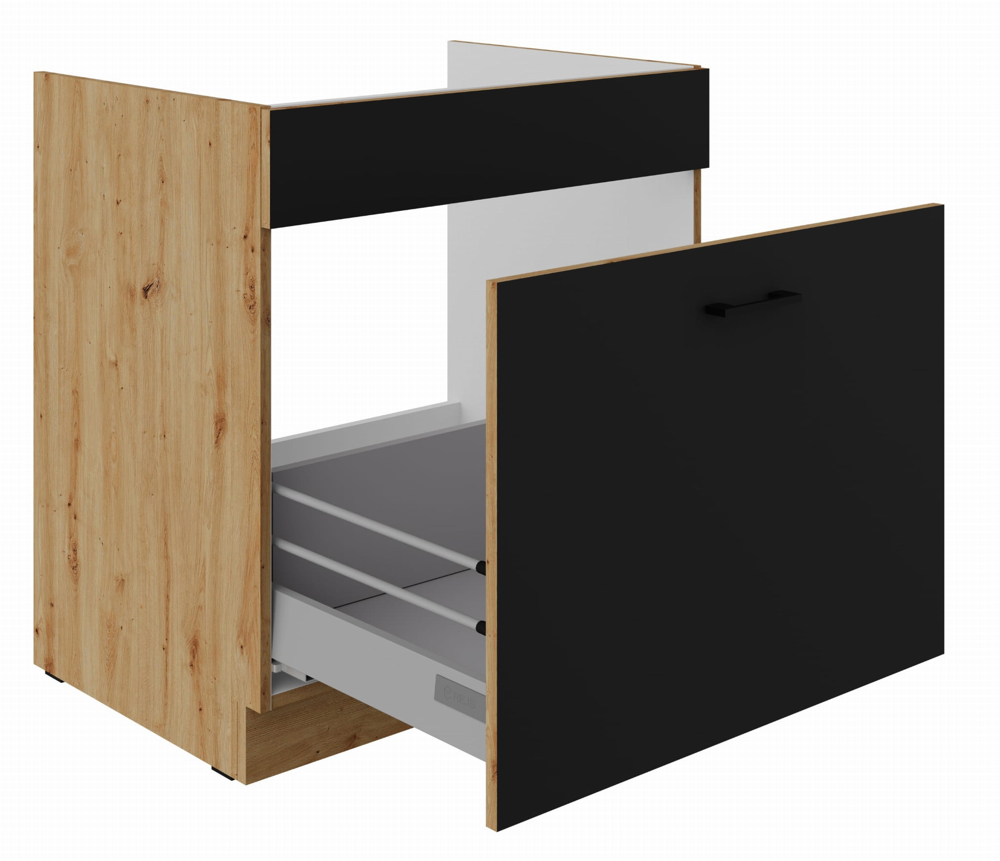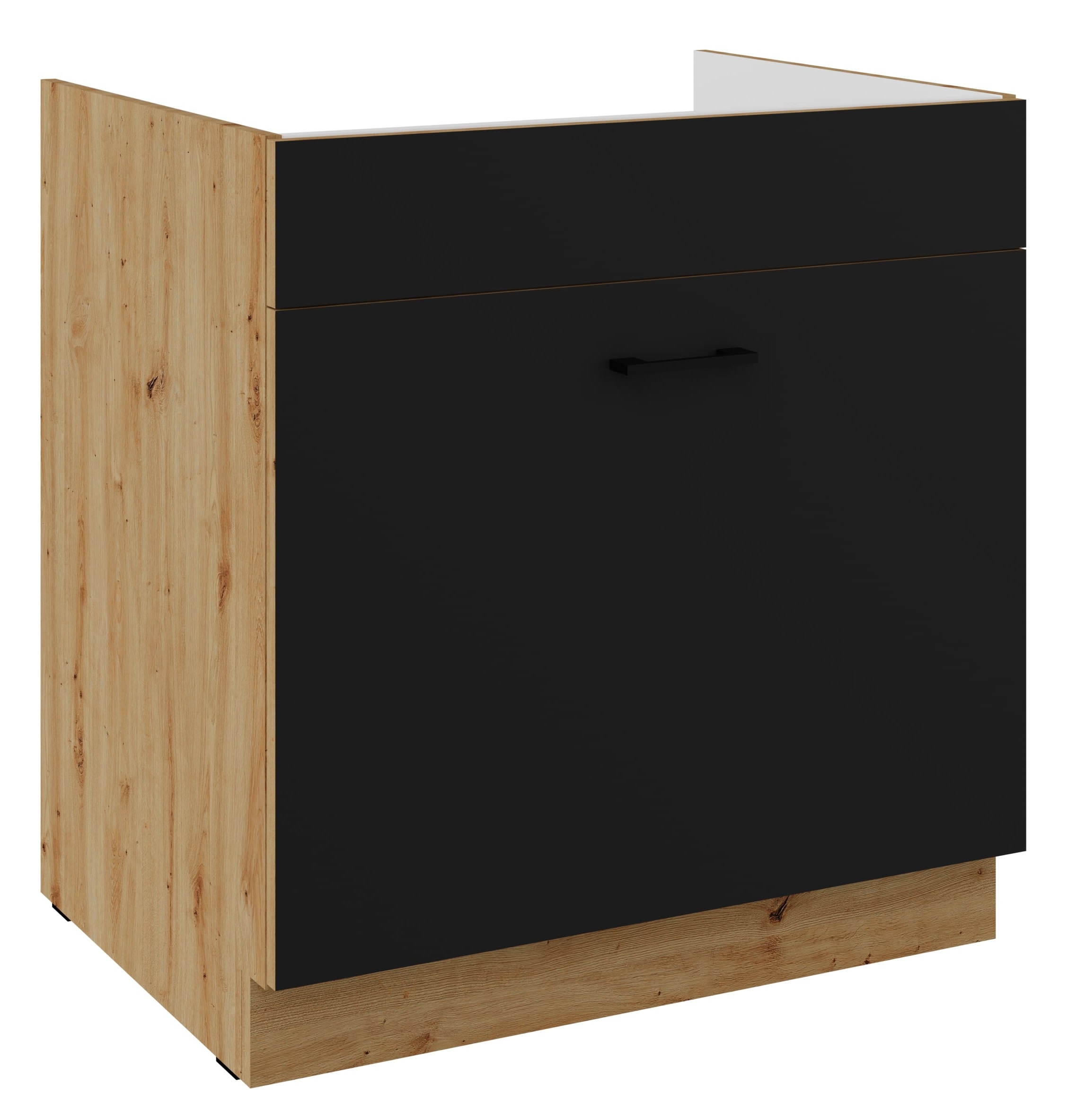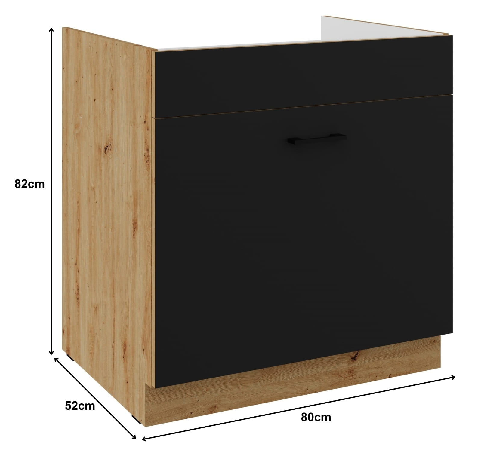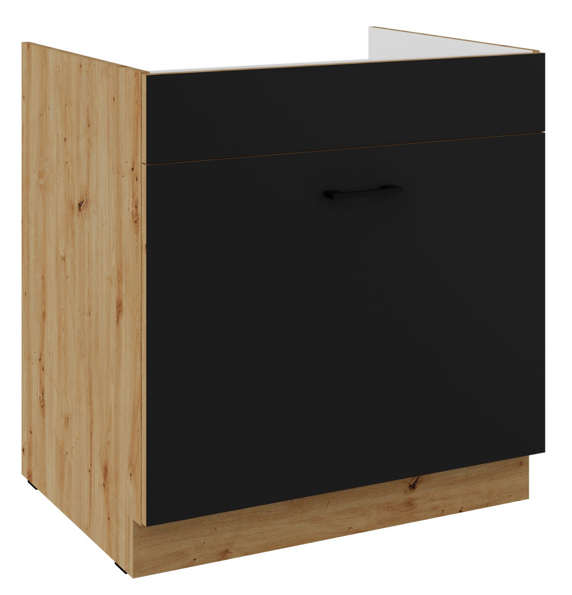 Szafka pod zlew z szufladą MILO 80cm Czarny i Dąb Artisan