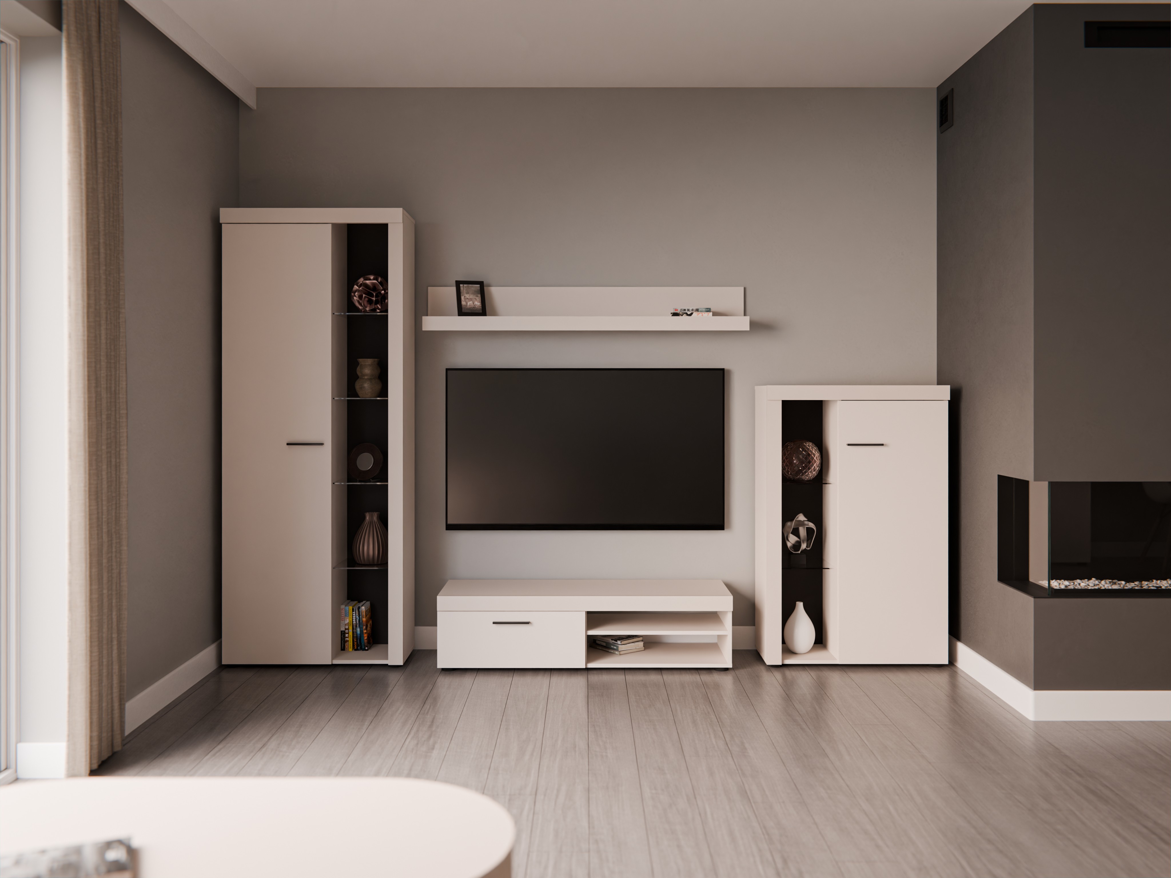 Meblościanka z szafką rtv RABBIA - Beż Piaskowy