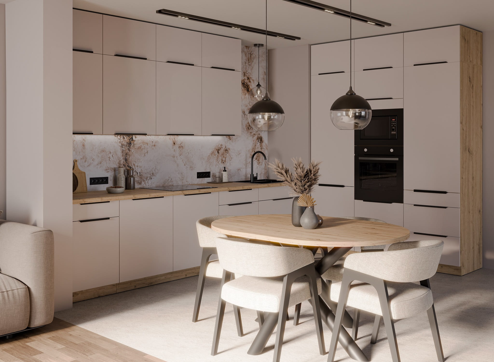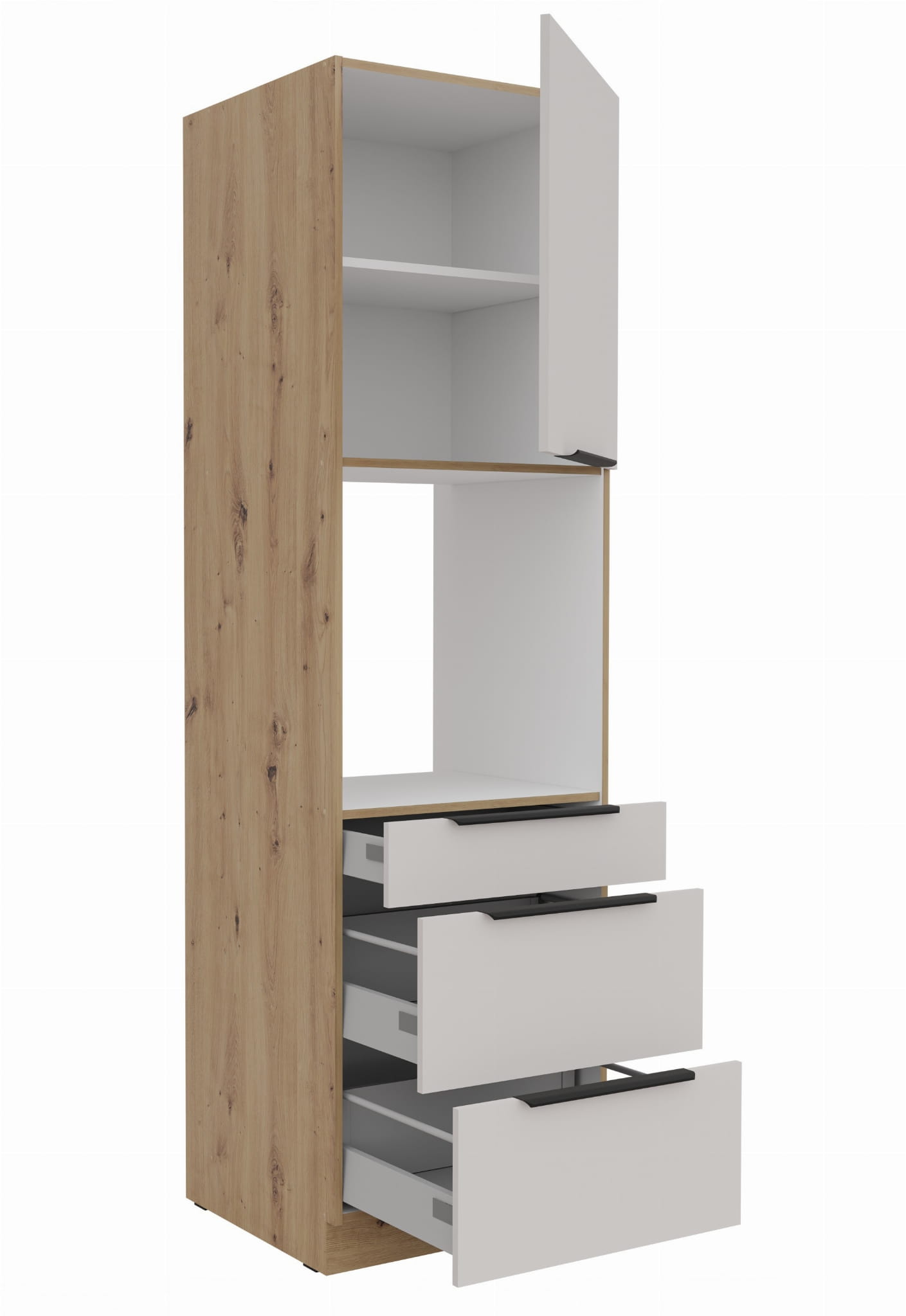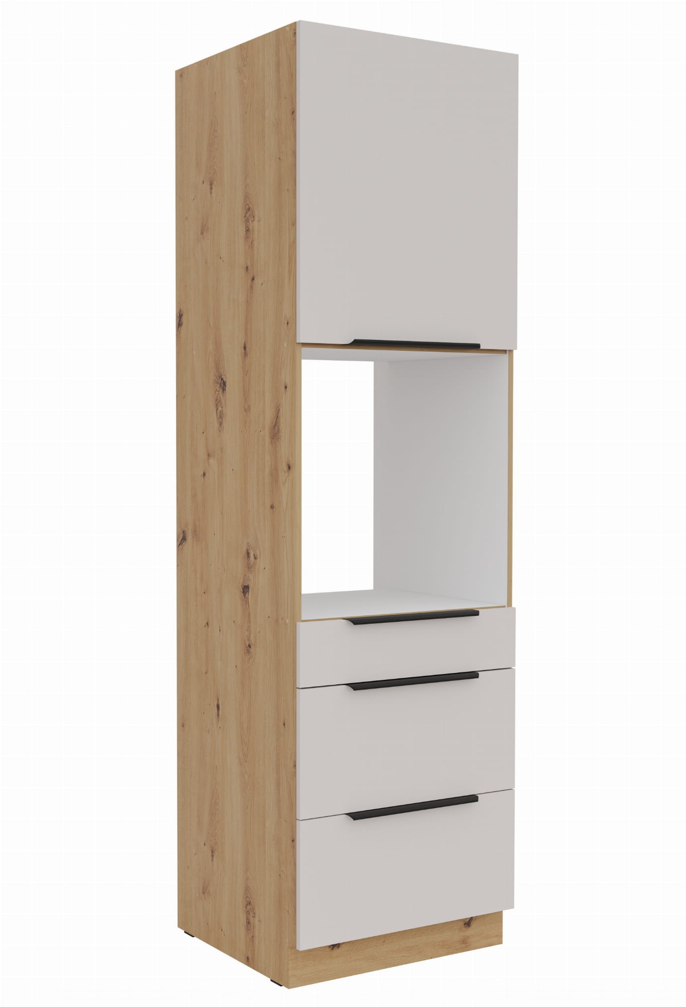 Wysoka zabudowa piekarnika z szufladami SANA - Kaszmir i Dąb Artisan