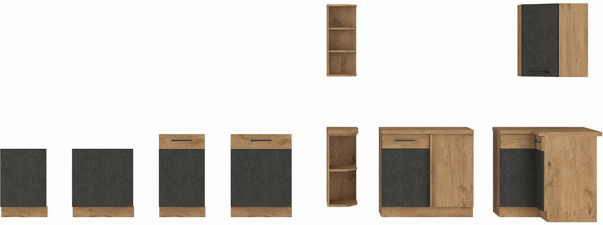 Jeden z kilkudziesięciu elementów kolekcji mebli WIGO z korpusem w kolorze Dębu Lancelot i frontami w odcieniu Matera