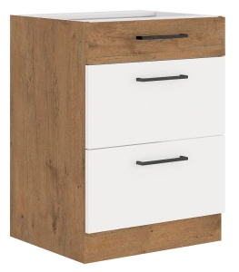 Szafka kuchenna dolna 3 szuflady 60cm WIGO - Dąb Lancelot i Biały połysk