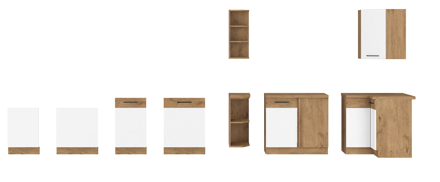 Kolekcja mebli kuchennych WIGO to wieloelementowy zestaw dzięki któremu dobierzesz meble pod wymiar swojej kuchni. Kolekcja WIGO to połączenie klasycznej i eleganckiej bieli z ciepłym, odcieniem drewna. Połyskujące białe fronty nadadzą Twojej kuchni nowoczesny i stylowy charakter, idealnie współgrający z brązowym korpusem w odcieniu Dąb Lancelot. Do tego czarne, minimalistyczne uchwyty i mamy wszystko czego potrzeba w kuchni.