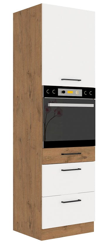 Wysoka zabudowa piekarnika z szufladami WIGO - Dąb Lancelot i Biały Połysk