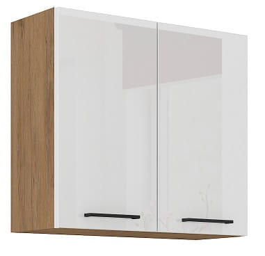 Wisząca szafka 2-drzwiowa 80x72cm WIGO - Dąb Lancelot i Biały połysk