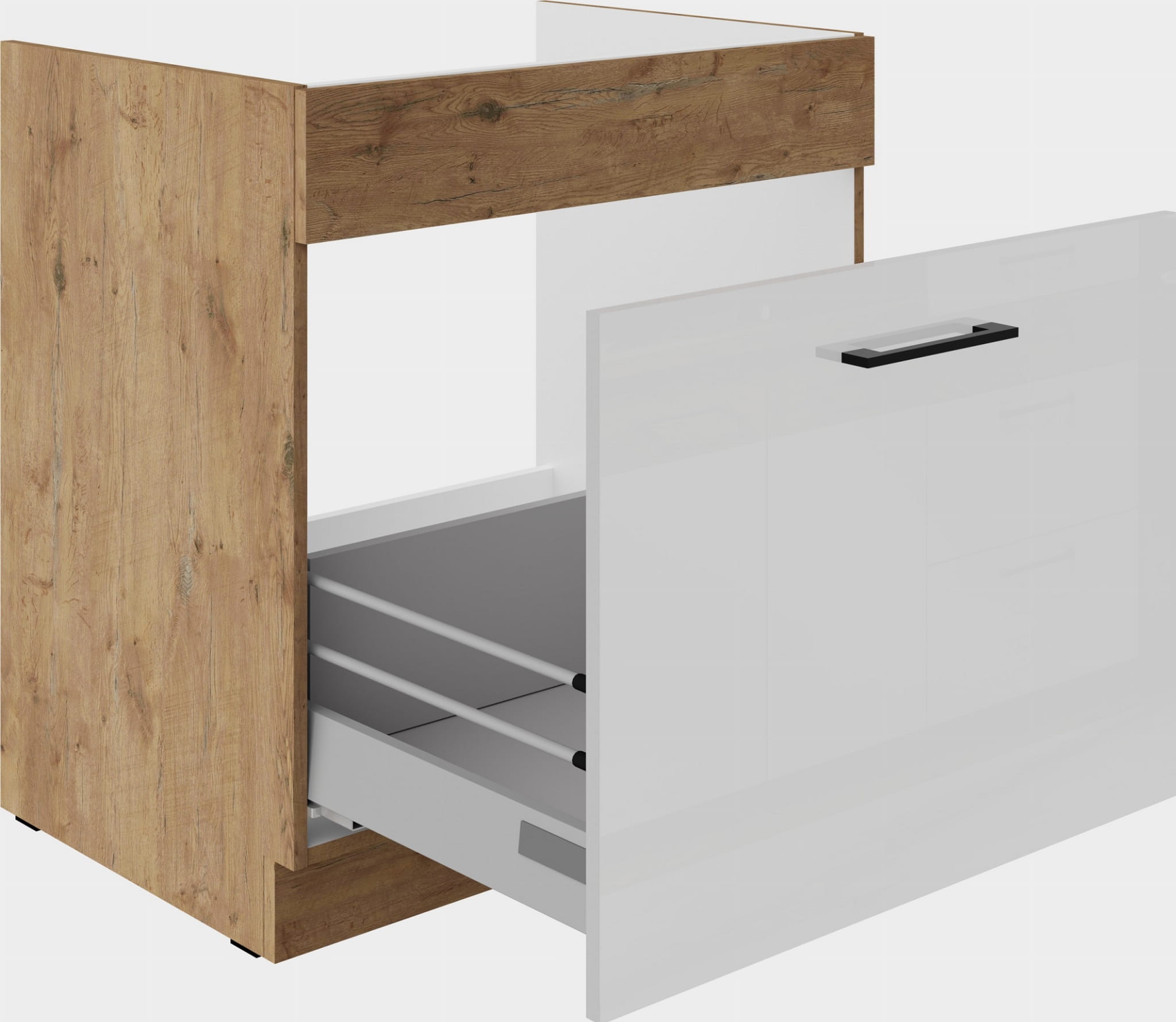 Szafka kuchenna pod zlew z szufladą 80cm WIGO Dąb Lancelot i Biały połysk