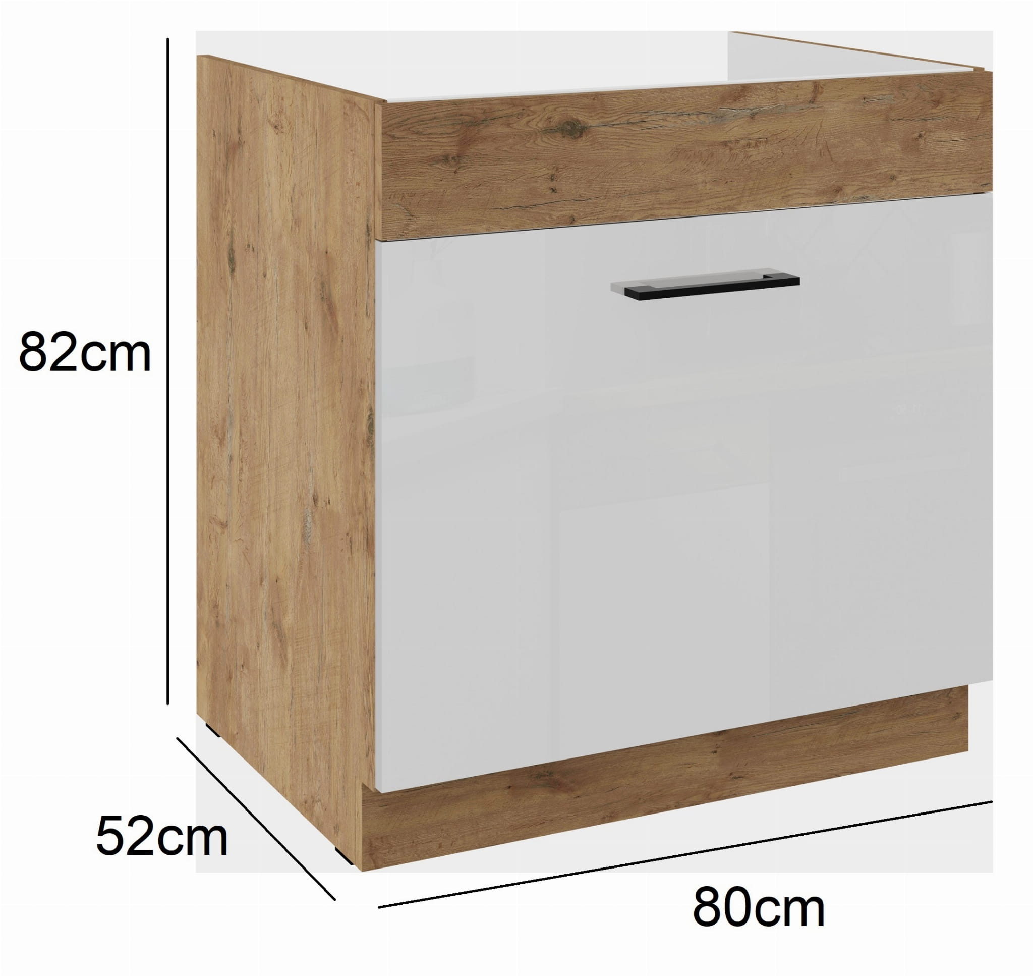 Szafka kuchenna z szufladą pod zlew 80cm WIGO - Dąb Lancelot i Biały połysk