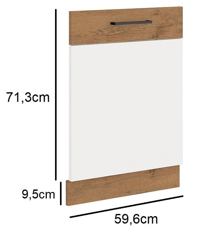 Front do zmywarki 60cm z ukrytym panelem sterowania WIGO - Biały połysk z dębową listwą cokołu
