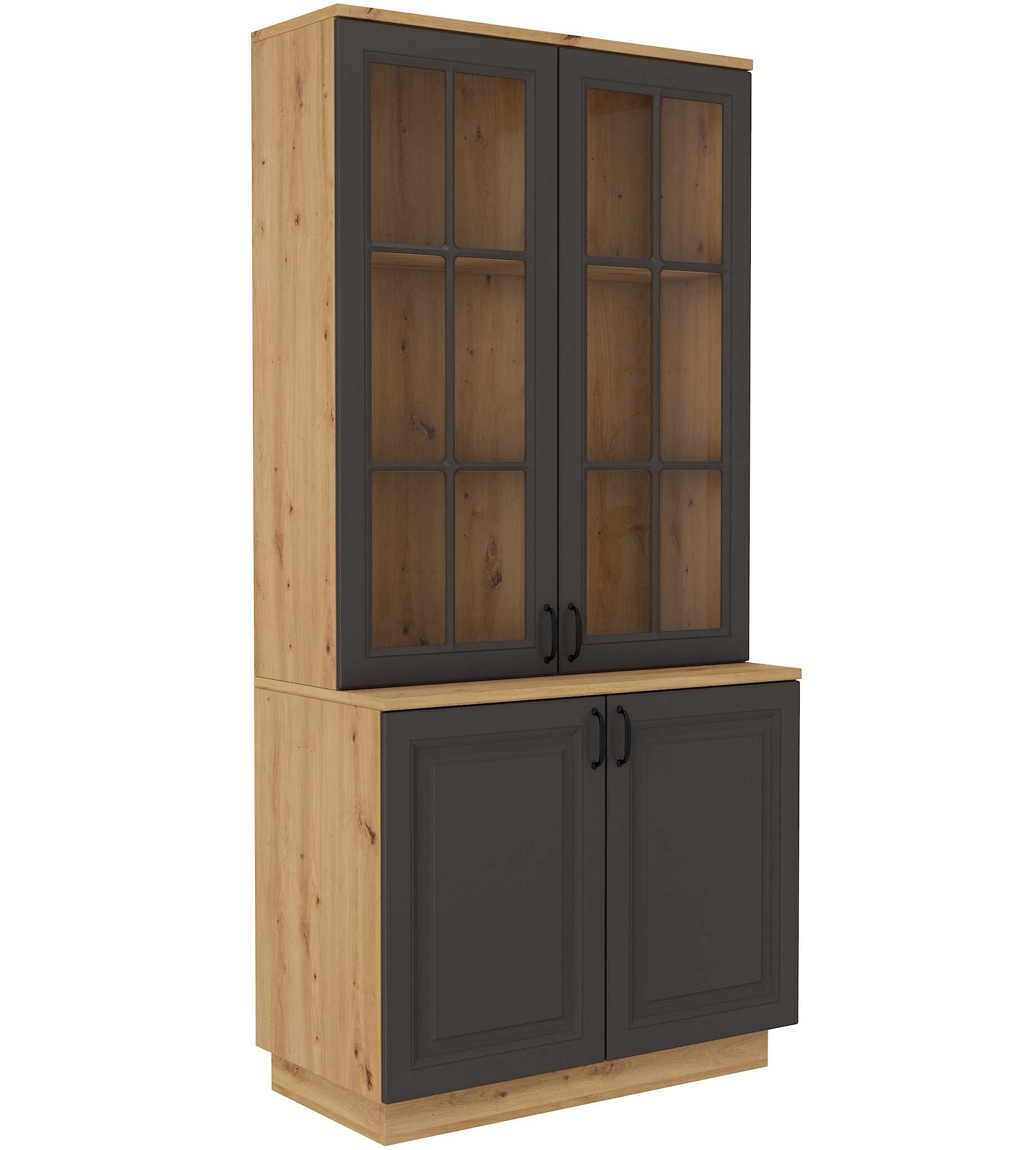Wysoki kredens FLARIA 4-drzwiowy Dąb Artisan i Grafit